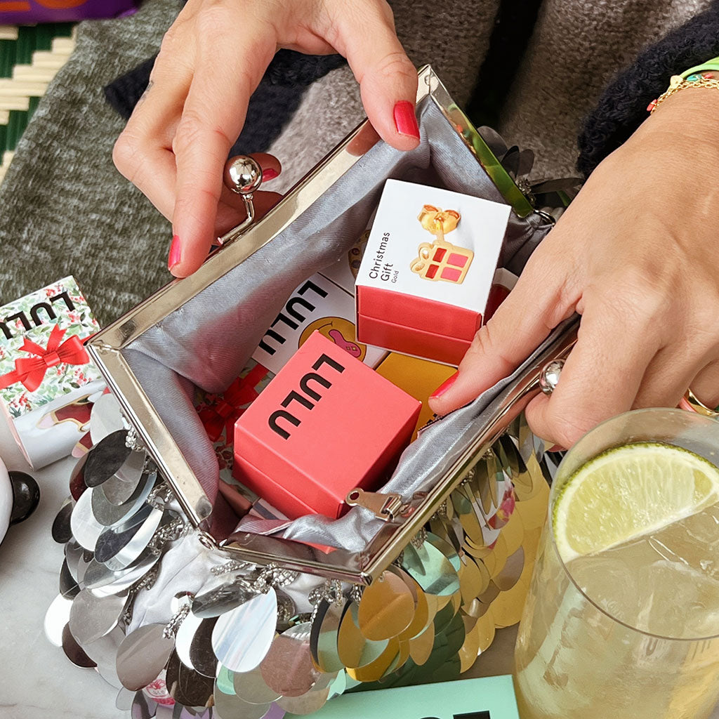 Toutes les puces d’oreilles de la Candy Shop de LULU sont pré-emballées dans de petits écrins carrés, qui peuvent être utilisés pour les conserver.